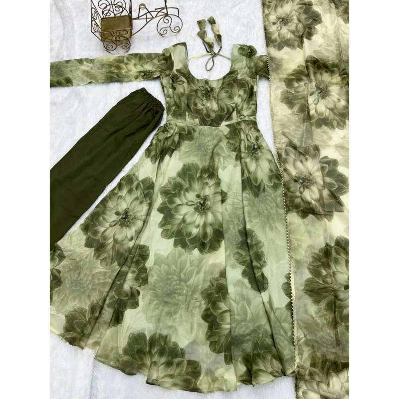خدمة FASHIONABAL TABBY ORGANZA SILK بطباعة 3D بستان بلون مع أخضر دوباتا