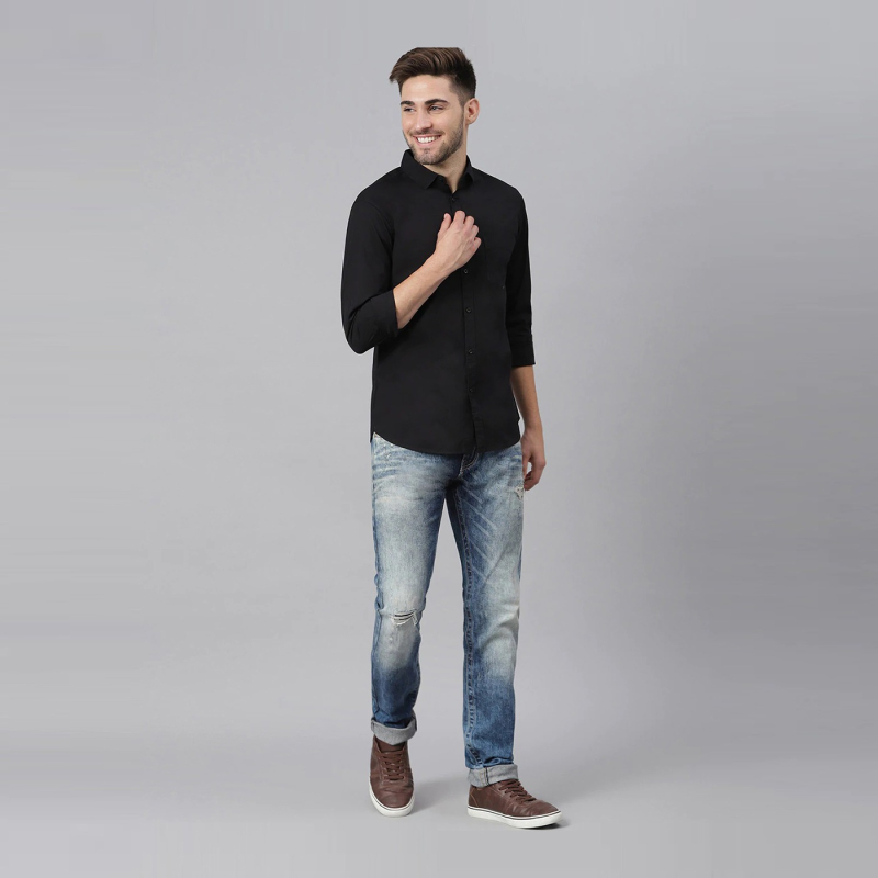 الرجال أسود سليم صالح قميص كاجوال