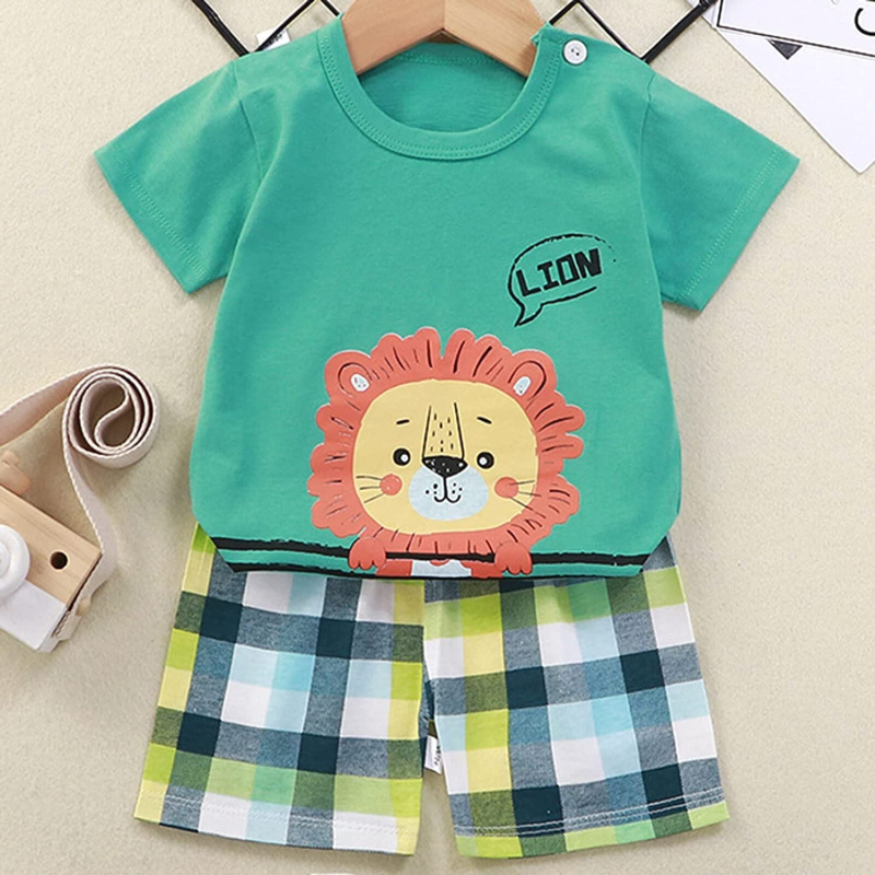 Material: Cotton knit fabric with great breath-ability and elasticity, Style: Cute animal/cartoon prints in half length summer daily wear t-shirt with bottoms, very comfortable and attractive, will surely make your baby look even more adorable.
