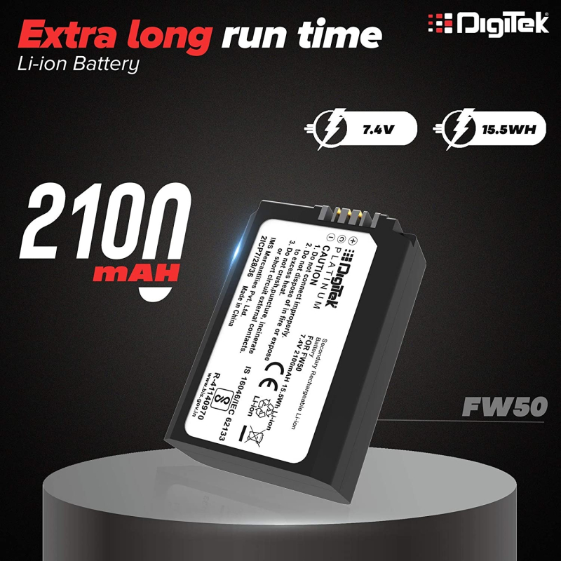 • Capacity: Best In Industry 7.4 Volts 2100Mah Capacity Lithium Ion Rechargeable Batteries Designed For Sony DSLR Camera