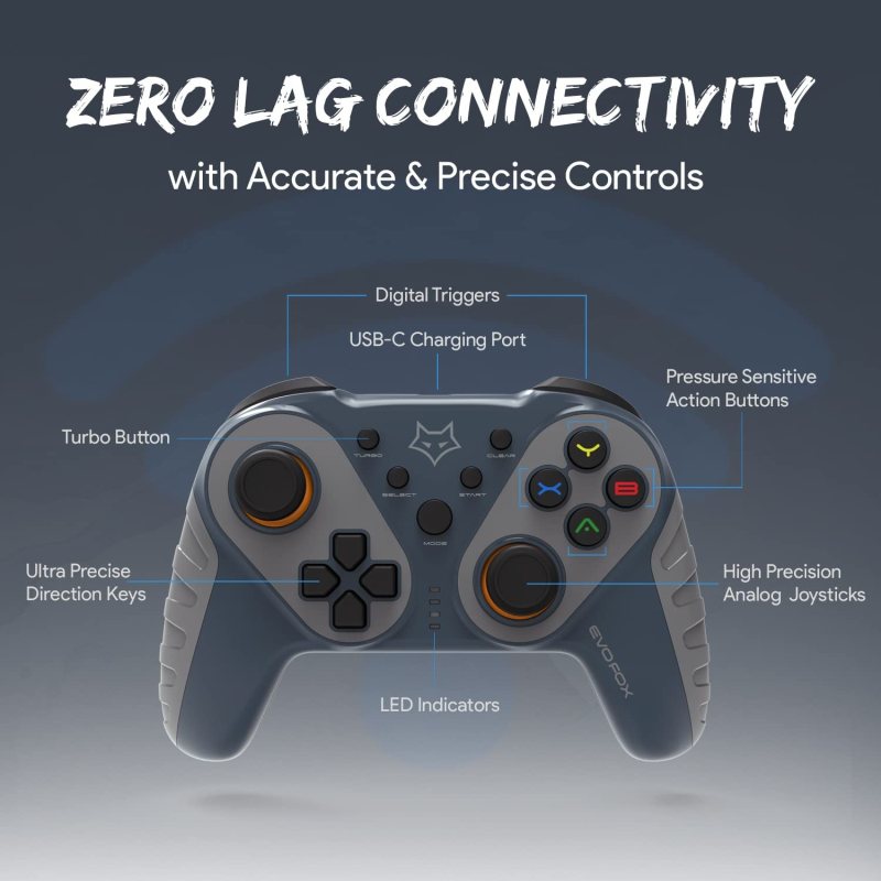 • The EvoFox Elite Ops Wireless Gamepad with Type C Charging is the ideal Android TV Gamepad. With all Android TVs supporting at least basic Gaming, a Gamepad at home is a must. Use the provided USB Extender Cable on your TV to ensure optimal wireless performance.