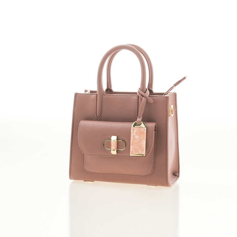 • Pink quilted handheld bag, has a zip closure
