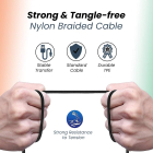 • Rough & Tough USB Cable: Charging cable with a double-braided exterior, premium aramid fiber core, and metal plugs. It has passed 10,000 bending tests and can easily withstand daily use.