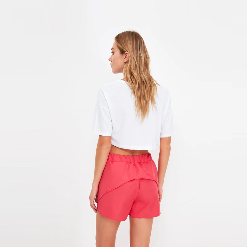 • Pink mid-rise regular shorts, has an elasticated waistband.