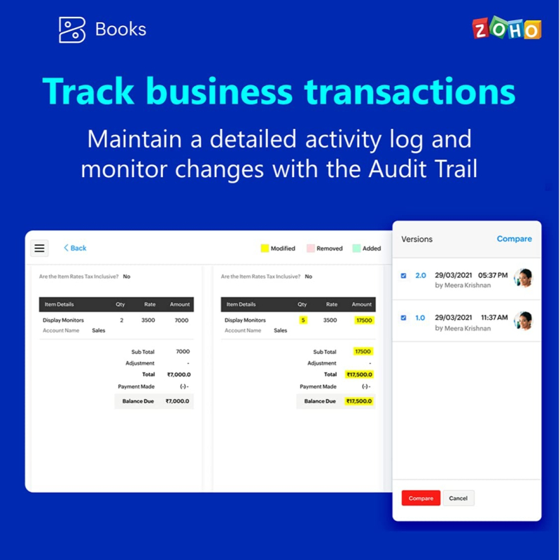 • Manage your business finances on the go, track your inventory and handle mundane accounting tasks effortlessly with Zoho books